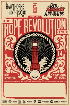 We will be on tour with Hawthorne Heights, Red Jumpsuit Apparatus, New Empire and Famous Last Words as part of The Hope Revolution tour this summer on the west coast of the USA.